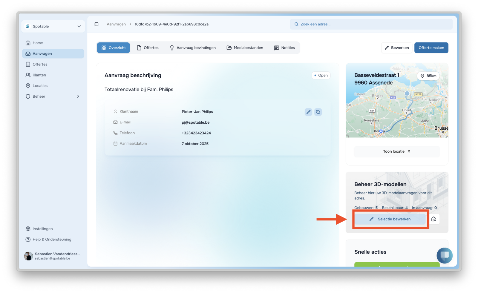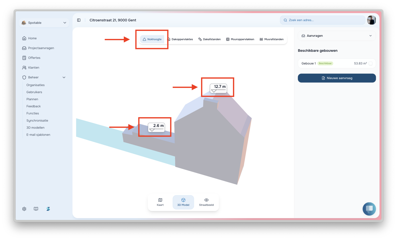 - Adresweergave: Het project adres is nu direct zichtbaar in de tabel Projectaanvragen.