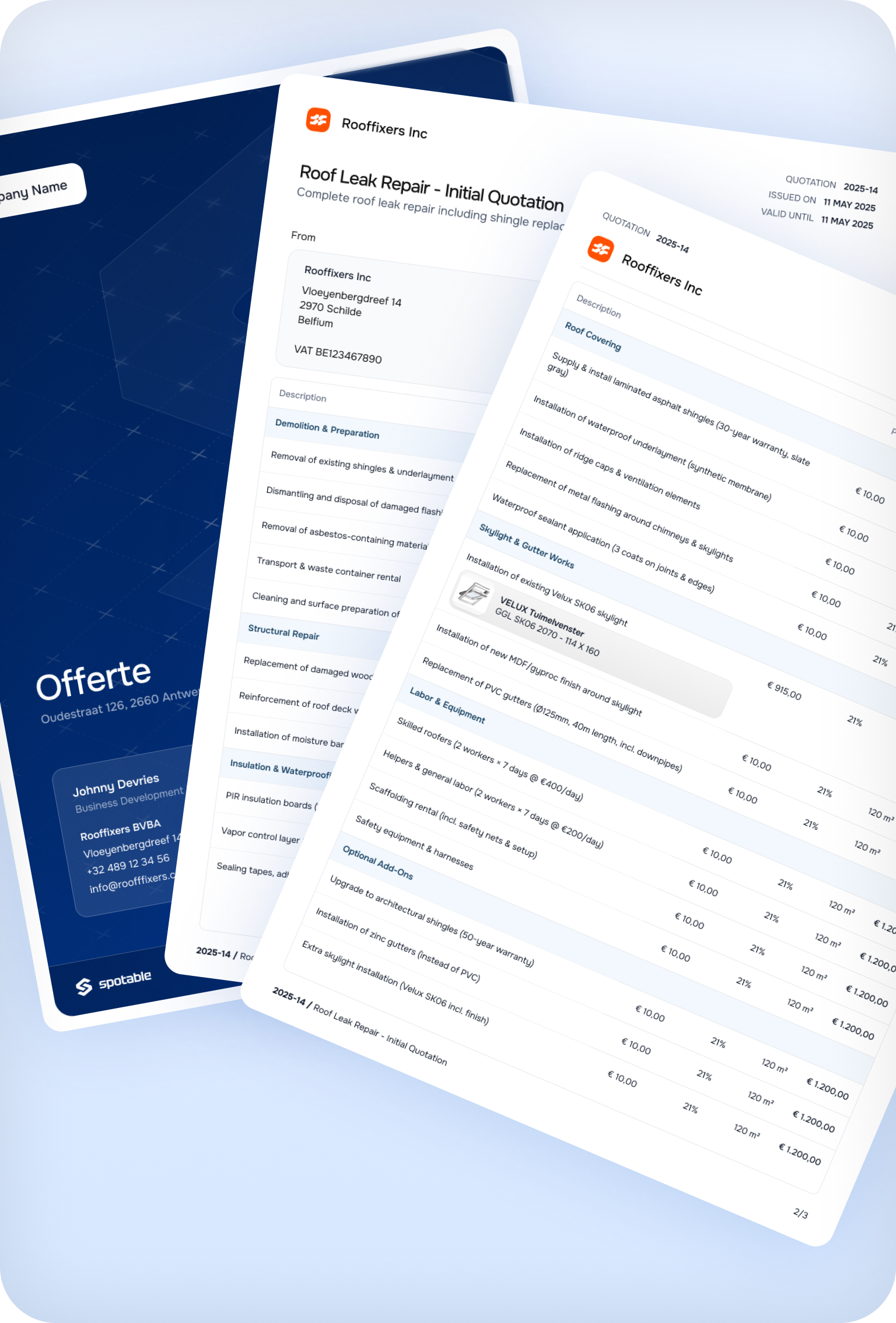 In de bouw tellen details en deadlines. Met Spotable meet, modelleer en offreer je sneller dan de concurrentie. Meet daken en gevels extreem nauwkeurig van achter je bureau: zonder klimmen, zonder giswerk en zonder tijdverspilling.